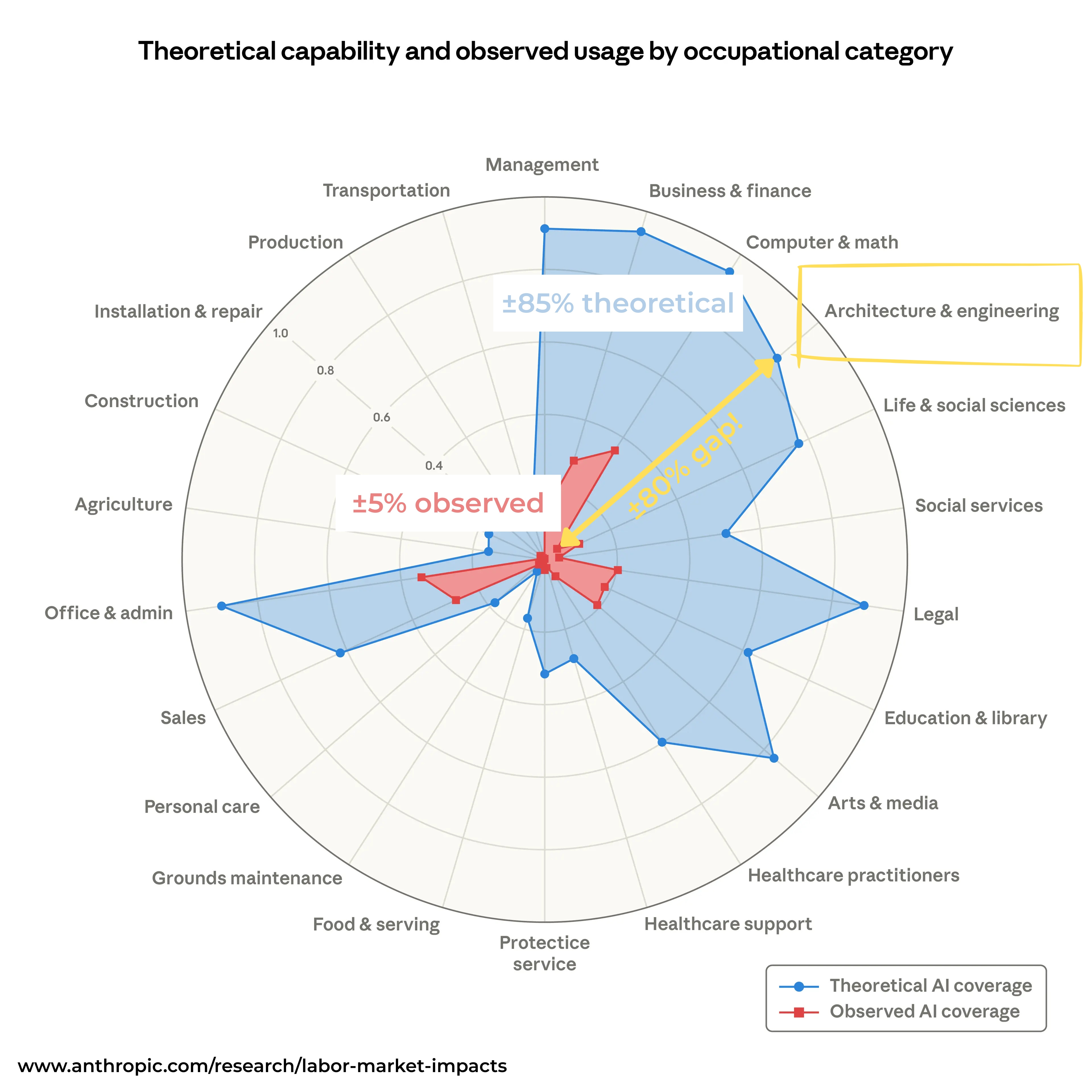 Up to 85% of architecture and engineering is theoretically “exposed” to being automated by AI.