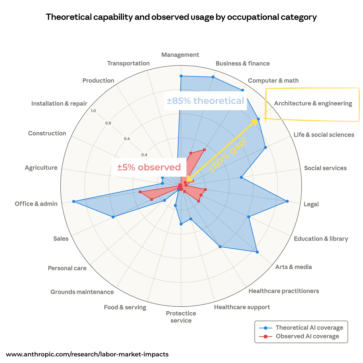 P.S. This is, no doubt, an over-simplification to make a point. Go read the papers for the nitty gritty on the methodologies and what “exposed to AI” really means. Feel free to hand-wave this analysis away as sensational by nit-picking the details. But if you do, I think you’re missing the forest for the trees. And the forest is brimming with opportunity for those paying attention.